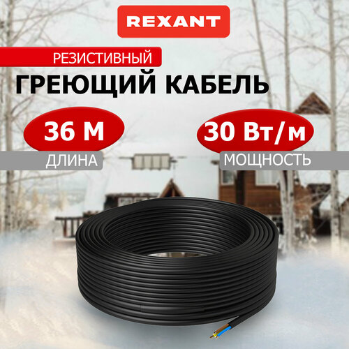 Кабель греющий для обогрева кровли, водостоков, площадок, ступеней ГРК-30-1080-36/36м REXANT 1 шт арт. 51-0065