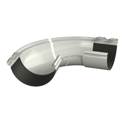 белыйЭлемент устанавливается на внешних и внутренних углах кровли и предназначен для соединения желобов под углом 90 градусов в целях изменения направления движения воды.