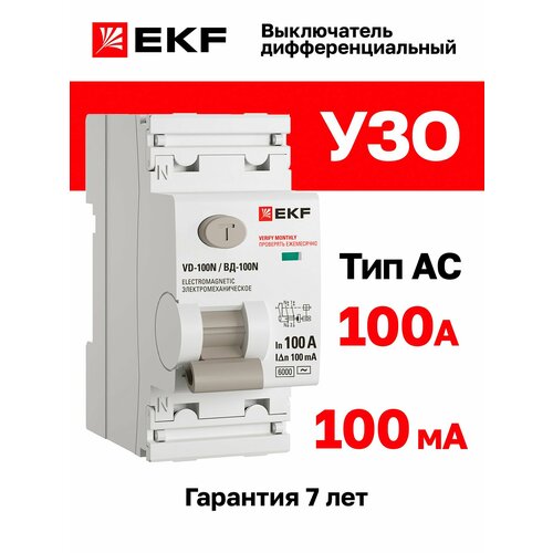 Выключатель дифференциального тока ВД-100N 2P 100А 30мА тип AC эл-мех 6кА PROXIMA EKF