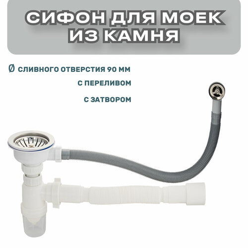 Сифон для кухонной мойки, раковины, с гофрой и затвором от проникновения запахов.