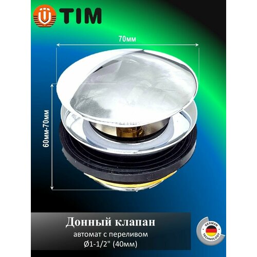Донный клапан с переливом TIM автомат 1-1/2" (ф40) /BAR0404B