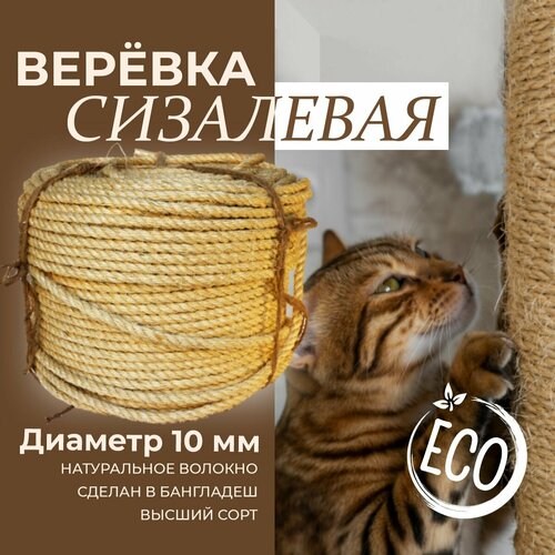 Веревка сизалевая, тросовая свивка, трехпрядная, крученая, диаметр 10мм, длина 60м