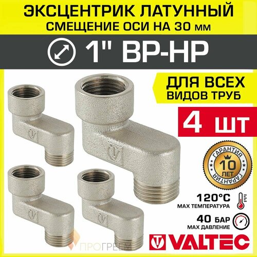4 шт - Эксцентрик латунный 1" ВР-НР х 30 мм VALTEC для смесителя / Резьбовой фитинг - телескопический переходник для подключения арматуры, сантехники со смешением осей соединения VTr.094. N.06030