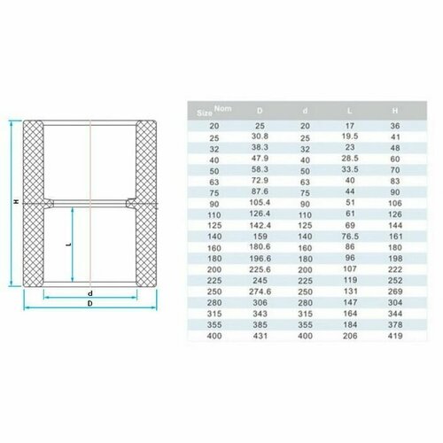 Муфта НПВХ нап сер растр ремонт Дн110 Ру10 SDR26, AQUAVIVA AQV101110 (1 шт.)