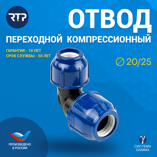 Отвод компрессионный переходной ПНД RTP, PN16, D25 х 20