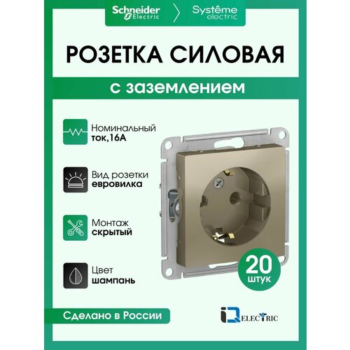 Розетка силовая Systeme Electric (Schneider Electric) AtlasDesign, шампань ATN000543 - 20 шт.