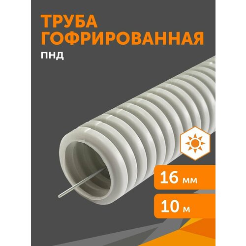 Труба гофрированная ПНД лёгкая 350 Н безгалогенная (HF) стойкая к ультрафиолету серая с/з d16 мм, 10м