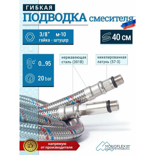 Гибкая подводка для смесителей М-10 3/8" MONOFLEX 12мм, длина 40см/0.4м, 2шт/уп