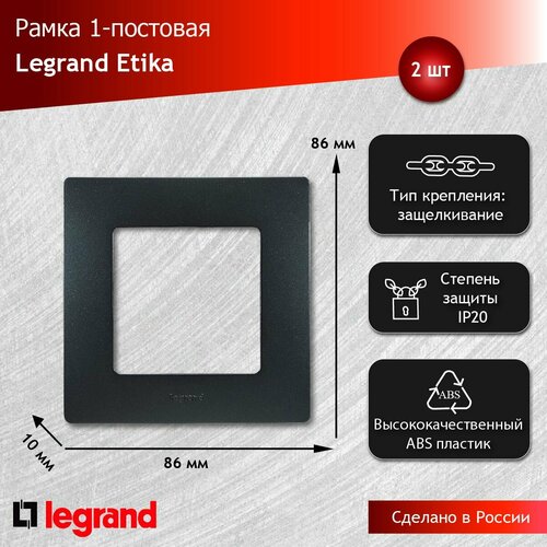 Рамка однопостовая антрацит, Legrand Etika (комплект 2шт)