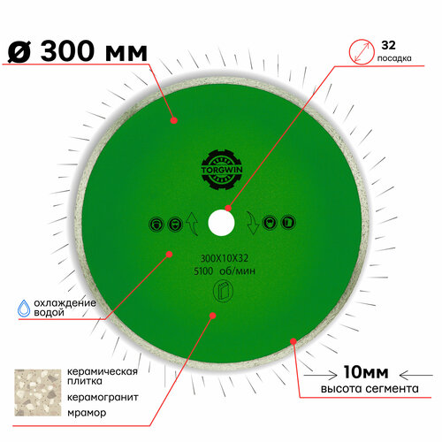 Диск алмазный сплошной 300 х 2,7 х 10 х 32/25,4 мм для гранита TORGWIN S15393