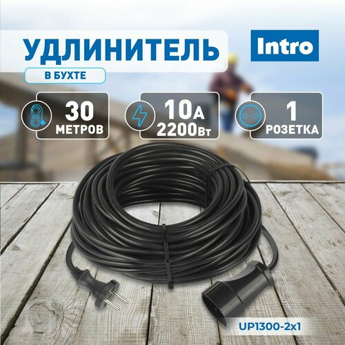 Удлинитель электрический сетевой Intro 30м без заземления 1 розетка ПВС 2х1мм2