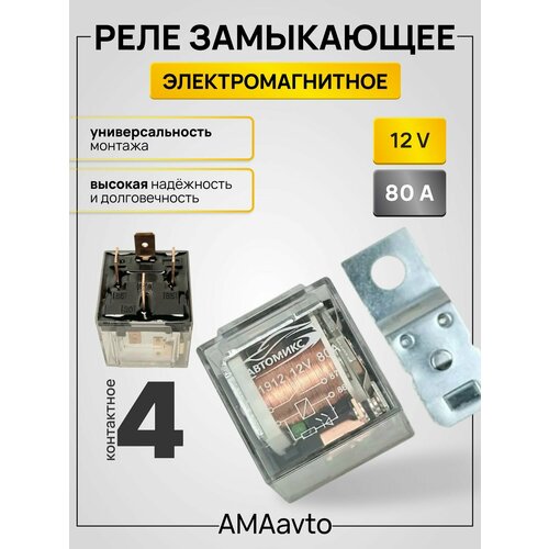 Реле силовое электромагнитное 80 А, 12 V 4-ёх контактное, 1 шт