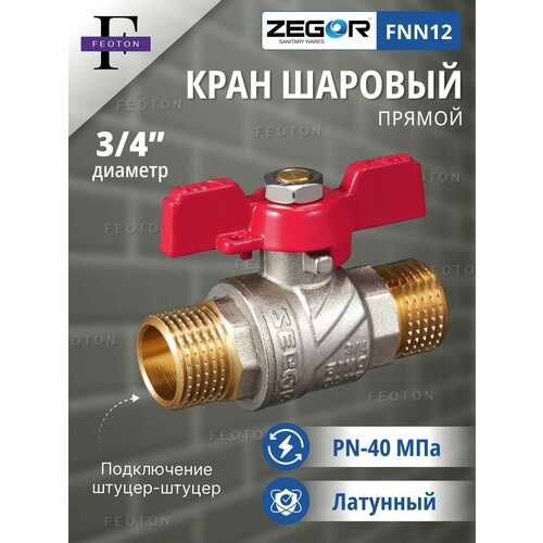 Кран шаровой НР/НР 3/4" бабочка ZEGOR (полнопроходной)