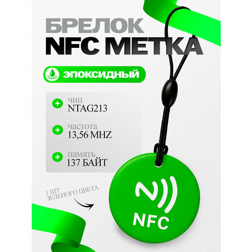 NFC метка-брелок эпоксидный для автоматизации, для amiibo, умный дом (электронная визитка) Зеленый, 1шт.