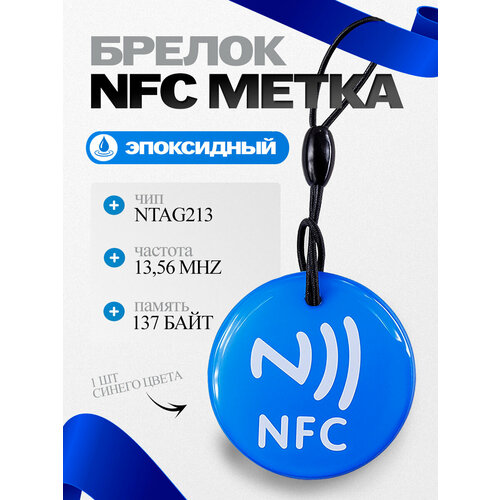 NFC метка-брелок эпоксидный для автоматизации, для amiibo, умный дом (электронная визитка) Синий, 1шт.