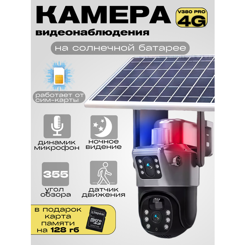 Камера видеонаблюдения 4G, уличная, на солнечной панели, 8 Мп, ночная съемка