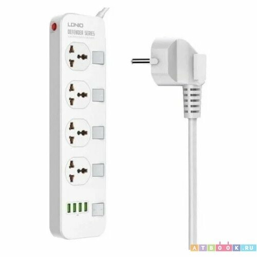 Сетевой фильтр LDNIO SC4407 Defender Series 2500W 4 розетки, 4 USB, 2м (white)