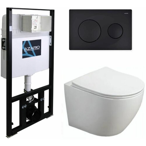 Готовый набор инсталляции Azario AZ-8010-1000 с черной панелью смыва AZ-8200-0013+унитаз подвесной Azario Grado AZ-0046-SP