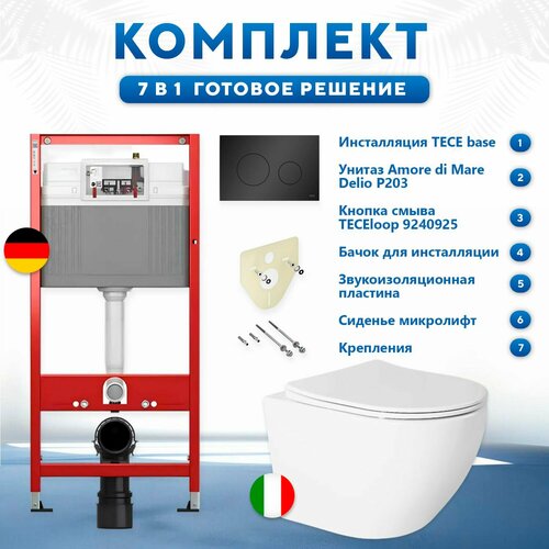 Инсталляция с унитазом комплект 7 в 1: инсталляция Tece 9240925 + унитаз подвесной безободковый Amore di Mare Delio P203 + сиденье микролифт