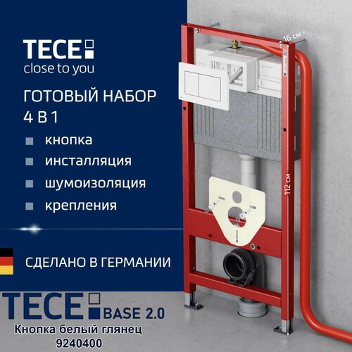 Система инсталляции для унитазов TECE Now 9400413 4 в 1 с кнопкой смыва Белый