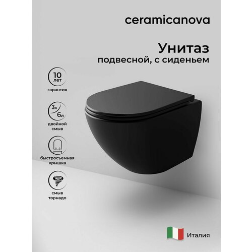 Подвесной унитаз Ceramicanova Metropol Торнадо безободковый, CN4002TMB черный матовый