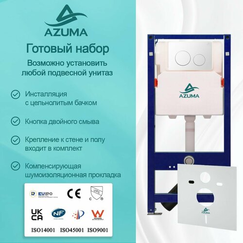 Система инсталляции для подвесного унитаза Azuma AZU507 + Кнопка смыва Ronda AZU003.02 хром глянцевый