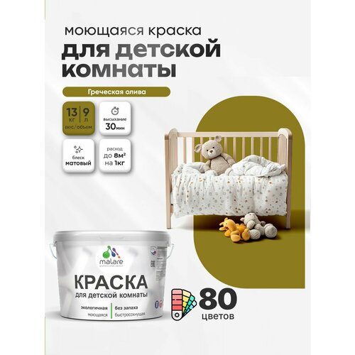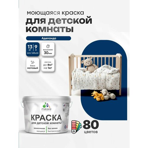 Краска акриловая (АК) Malare Краска Malare интерьерная для детской комнаты, для стен и обоев, для потолка, акриловая без запаха моющаяся матовая, аделаида (9л - 13кг) матовая аделаида 9 л 13 кг