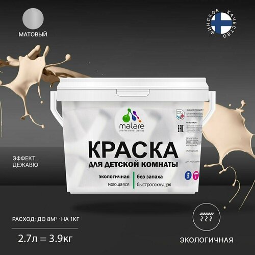Краска Malare интерьерная для детской комнаты, для стен и обоев, для потолка, акриловая без запаха моющаяся матовая, эффект дежавю (2.7л - 3.9кг)
