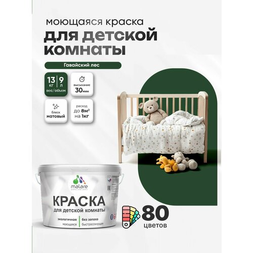 Краска акриловая (АК) Malare Краска Malare интерьерная для детской комнаты, для стен и обоев, для потолка, акриловая без запаха моющаяся матовая, мичиган (9л - 13кг) матовая мичиган 9 л 13 кг