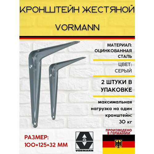 Кронштейны для полки серые 100х125х32 мм, нагрузка до 30 кг, 2 штуки в упаковке