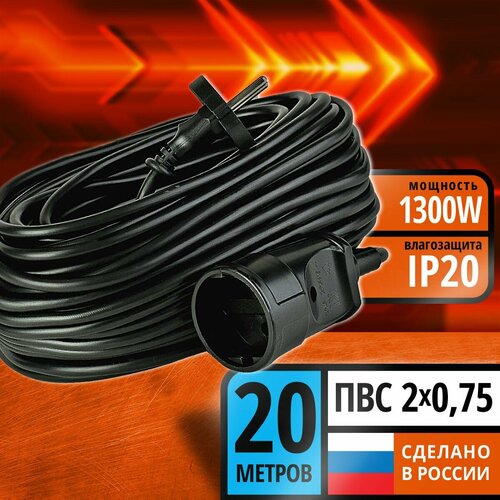 Удлинитель силовой без каркаса 20м ПВС 2*0,75 1300 Вт 1гн. без заземления