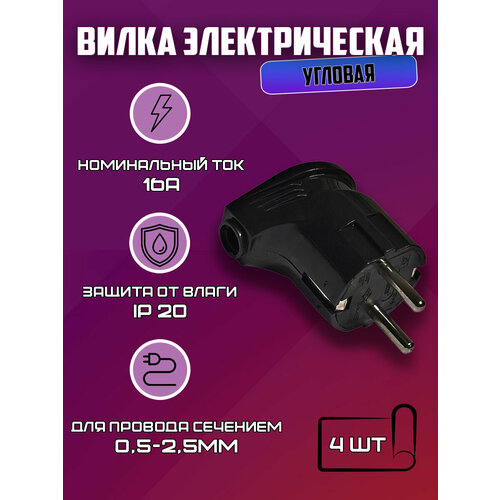 Вилка угловая с заземлением UNIVersal черная 4 шт.