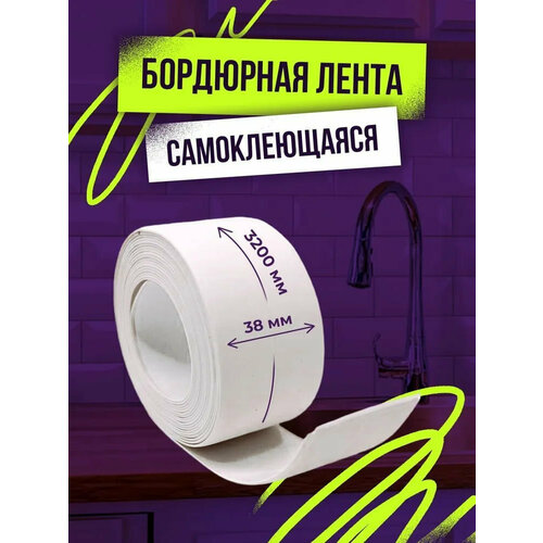 Бордюрная лента/ Контурная лента для кухни и ванной "Home", 3,8х3,2 метра, белая, толщина 2 мм, ПВХ