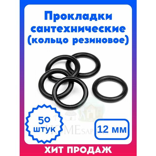 Кольцо резиновое уплотнительное для сантехники, диаметр 12 мм (набор 50 шт.)