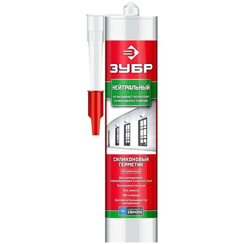 ЗУБР 280 мл прозрачный, Нейтральный силиконовый герметик, эксперт (41237-2)