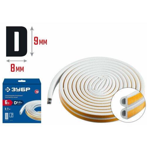 ЗУБР D-профиль, размер 9 х 8 мм, 6 м, самоклеящийся резиновый уплотнитель (40920-006)