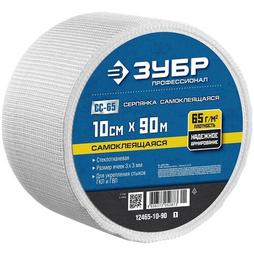 ЗУБР 10см х 90м, 3х3 мм, Самоклеящаяся стеклотканевая сетка, профессионал (12465-10-90)