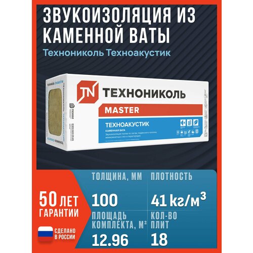 Звукоизоляция из каменной ваты Технониколь Техноакустик 1200x600x100, 18 плит, 12.96 м2
