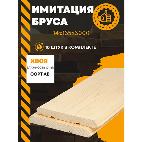 Имитация бруса 14х135х3000 (комплект 10 шт) древесины хвойных пород.