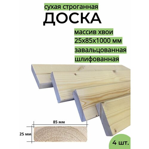 Доска строганная завальцованная 25х85х1000 мм хвоя сорт АВ, 4 штуки