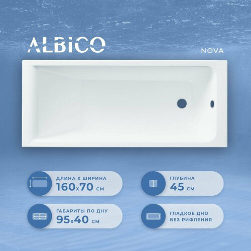 Ванна акриловая Albico Unica 160х70 в комплекте с ножками