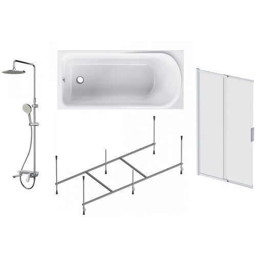 Ванна комплект Gem W90ASET-170D3W5 5в1: ванна 170х70, каркас, душевая система, смеситель для душа, шторка на борт ванны