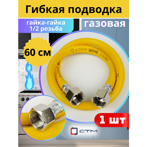 Подводка гибкая для газа 1/2х0,6м гайка-гайка, ПВХ с полиэфирной нитью (СТМ)