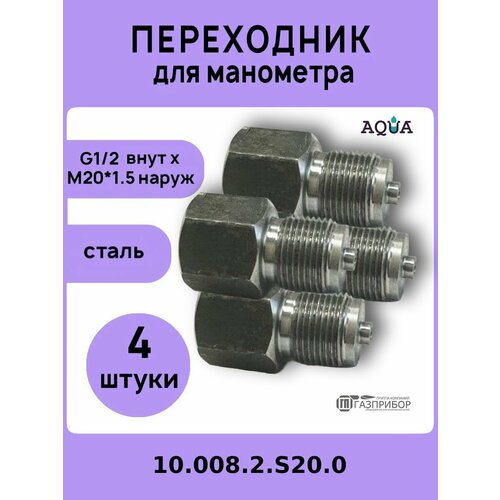 Переходник для манометра G1/2 внутр. - М20х1,5 наружн. Сталь без покрытия. Комплект 4 штуки.10.008.2