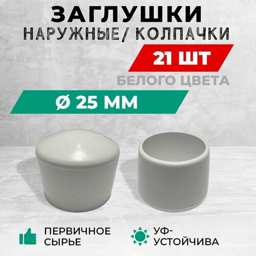 Наружная пластиковая заглушка для труб диаметром д25 мм. Белый цвет. Комплект: 20+1 шт.