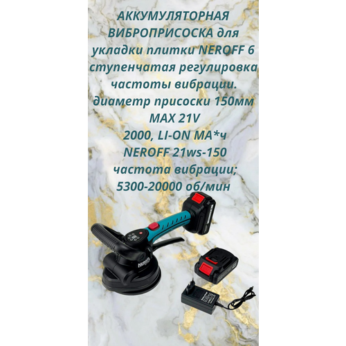 Виброприсоска для укладки плитки аккумуляторная NeroFF-150WS 21V (6 режимов мощности, 0-23000)