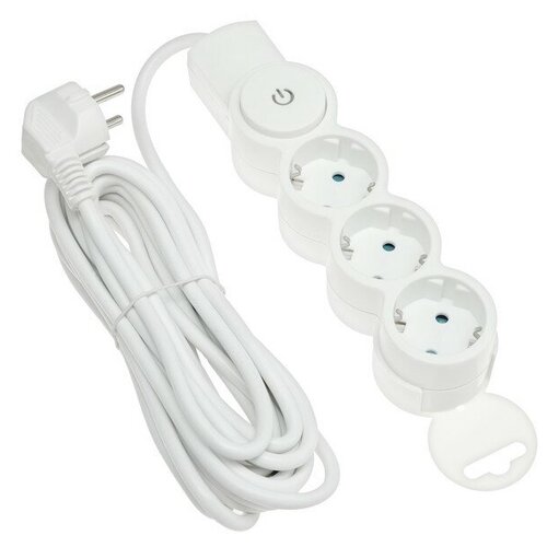 Удлинитель duwi, 3 розетки, 5 м, 10 А, 2200 Вт, ПВС 3х0.75 мм2, с з/к, с выключателем