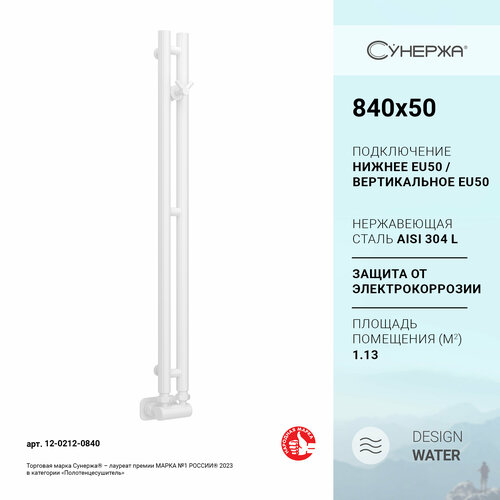 Полотенцесушитель водяной Сунержа Нюанс EU50+ 840х50 Белый