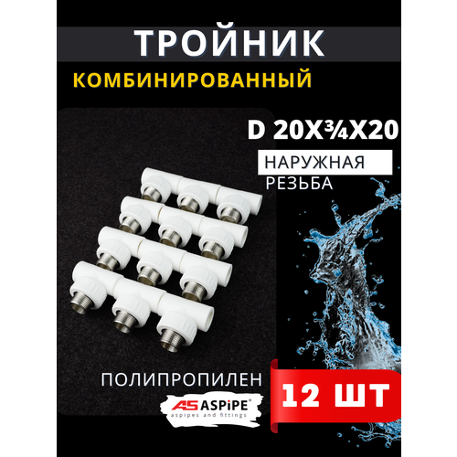 Тройник полипропиленовый 20х3/4х20 наружная резьба, комбинированный PPRC (Aspipe) 12шт.