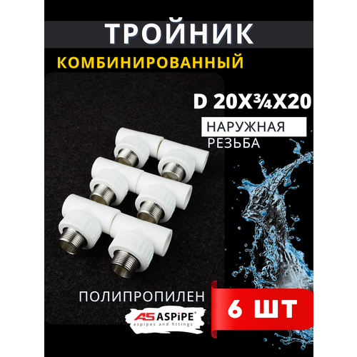 Тройник полипропиленовый 20х3/4х20 наружная резьба, комбинированный PPRC (Aspipe) 6шт.